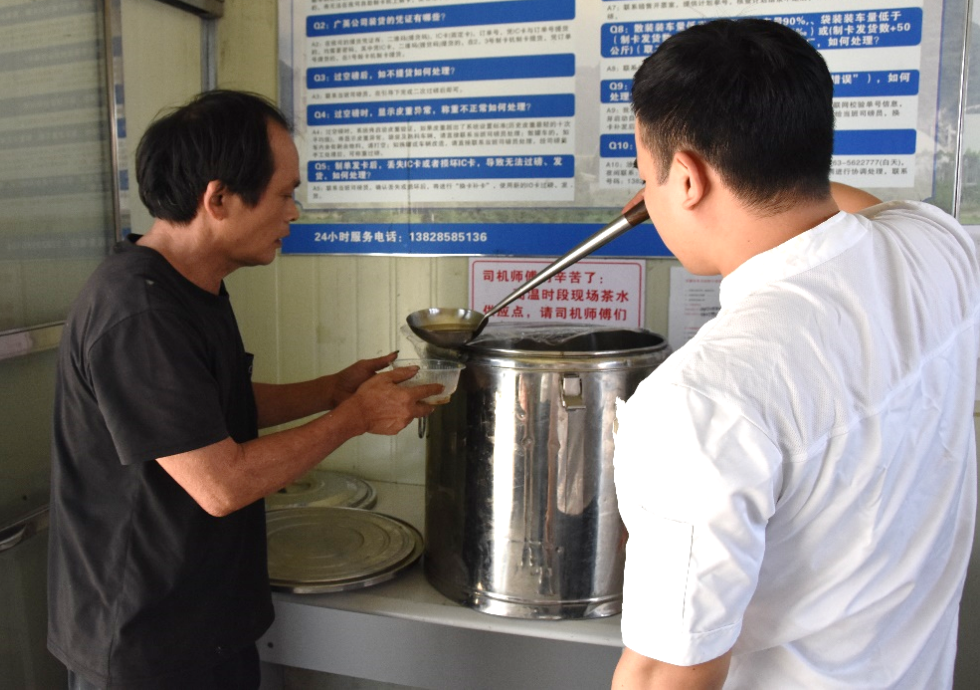 二線發(fā)運(yùn)廣場(chǎng)上,貨運(yùn)司機(jī)們駕著車輛往來(lái)穿梭,九月陽(yáng)光把駕駛室烤得像“蒸籠”。公司特意在制卡房設(shè)“清涼供應(yīng)點(diǎn)”,工作人員持長(zhǎng)勺為休整的司機(jī)舀上滿滿的一碗清熱綠豆湯?!芭荛L(zhǎng)途最怕熱天,這兒隨時(shí)都能享受到公司的夏日關(guān)懷,太貼心了!”剛結(jié)束運(yùn)輸?shù)膹垘煾到舆^(guò)綠豆湯不住夸贊。小小的制卡房,成了司機(jī)們的“清涼港灣”,讓奔波的物流崗位也被關(guān)懷緊緊包裹。