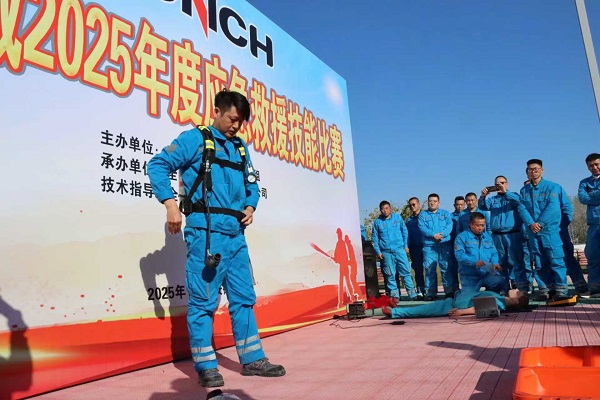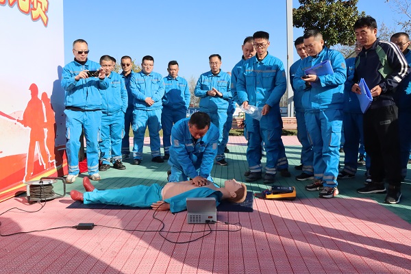 本次比賽共設正壓式呼吸器使用、除顫儀使用、心肺復蘇三個比賽項目,每個項目分別由每支隊伍的一人獨立完成,根據三個項目全部完成且用時長短進行排名。在打分員的“哨聲”吹響后,由第一位隊員快速完成器材呼吸閥、壓力檢查及穿戴等操作,接著第二位隊員對模擬假人進行心肺復蘇操作,最后一位隊員進行除顫儀使用操作。比賽過程中,參賽隊員們爭分奪秒演示規(guī)定動作,用專業(yè)動作與高效反應詮釋“時間就是生命”的真諦。場邊觀眾不時為參賽隊員們的精彩表現鼓掌喝彩,現場氛圍熱烈而緊張。
