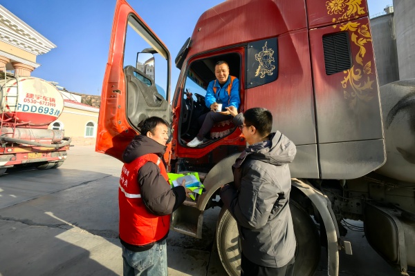 公司服務人員在廠區(qū)1#路主干道側面設立了“暖冬服務站”,每當運輸車輛駛入,工作人員便主動上前,將一杯杯熱氣騰騰的姜茶遞到司機手中,同時為拉運司機準備了紙巾、反光背心、卸貨服等物資,細致詢問在公司拉運水泥的意見與需求,進一步提升了客戶對公司的認知度和服務的認可度。