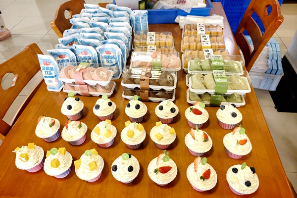 制作間隙,孩子們興奮地品嘗著準(zhǔn)備的小點(diǎn)心,紙杯蛋糕、餅干、瑞士卷、酸奶等琳瑯滿目,歡聲笑語中更添一份童趣與滿足。
