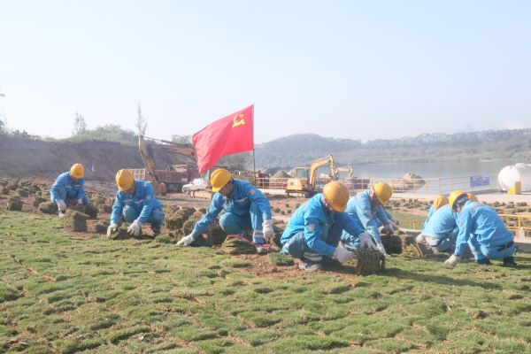 活動(dòng)現(xiàn)場中,大家有條不紊地進(jìn)行場地清理,清除碎石,對鋪設(shè)區(qū)域進(jìn)行翻耕,打碎土塊、平整地面,鋪設(shè)草皮。在大家的共同努力下,一塊塊草皮緊密銜接,構(gòu)建出一道致密的生態(tài)護(hù)坡,讓現(xiàn)場環(huán)境煥然一新,一抹抹綠色映入眼簾,為早春廠區(qū)增添了一抹盎然生機(jī)。